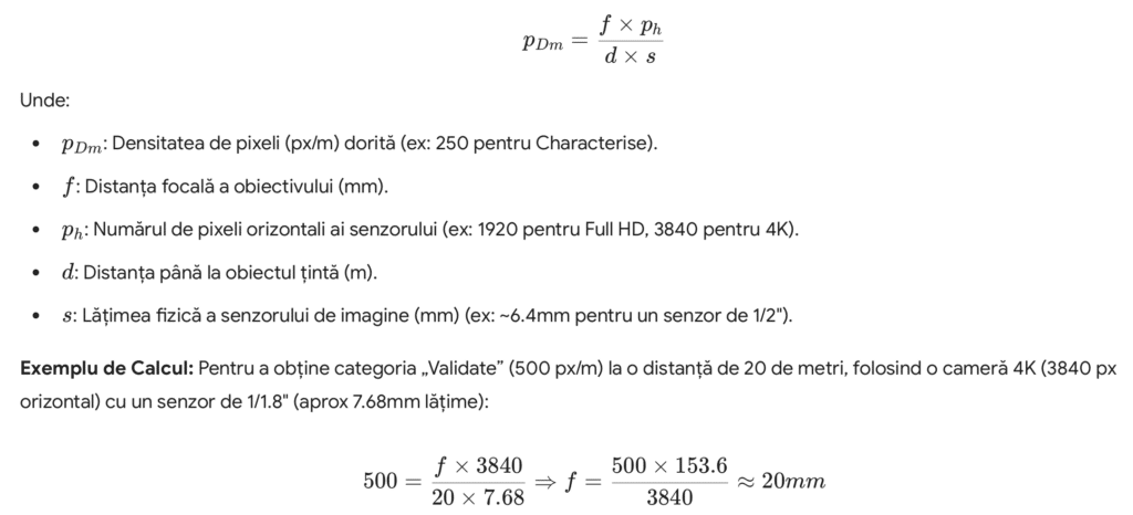 4.3 Fundamentarea matematică și calculul obiectivelor – Standardul 2025 formalizează relația matematică dintre senzor, lentilă și distanță, oferind proiectanților instrumentul exact pentru a garanta conformitatea.