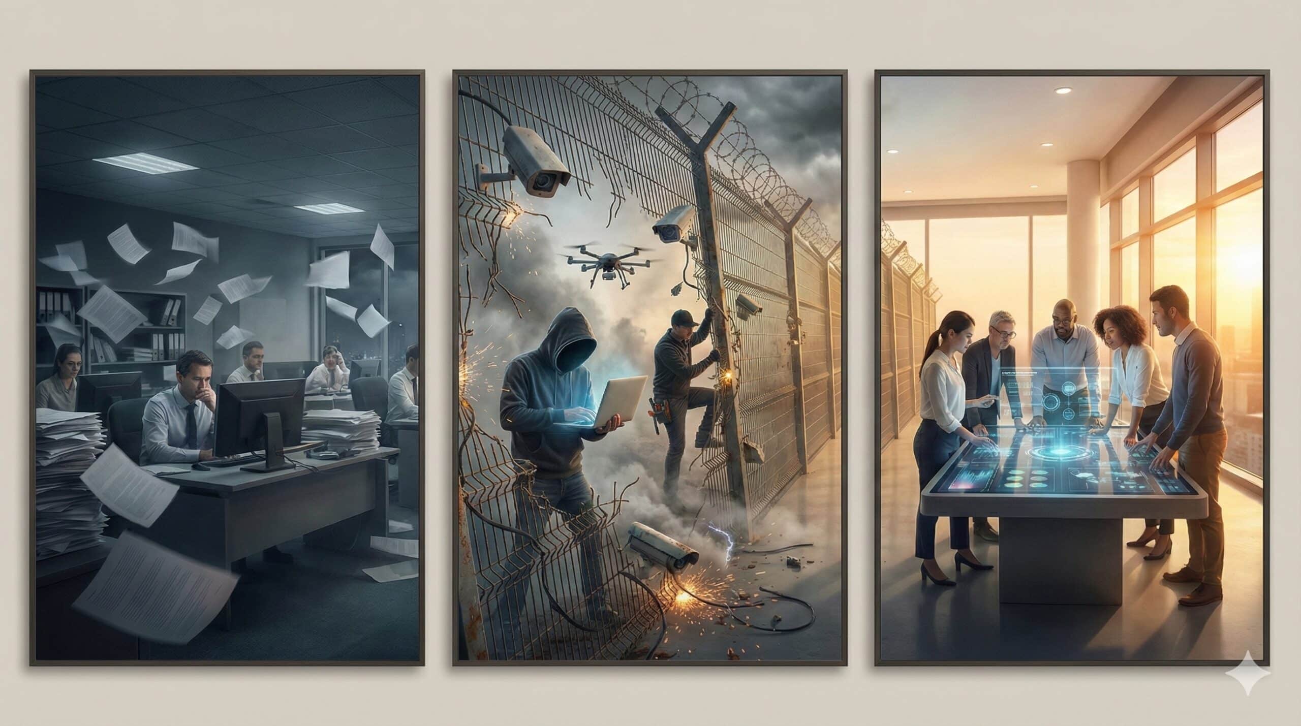 Obsolescența modelului și sindromul “Legacy” – Incidentele recente care implică tehnologii disruptive, cum a fostparalizia aeroportului Gatwick cauzată de drone sau atacurile hibride asupra infrastructurii critice, au demonstrat fără echivoc că paradigma “porților și paznicilor” este irelevantă pentru noii vectori de atac. Un gard, oricât de înalt, este inutil împotriva unui dispozitiv care zboară deasupra lui, sau a unui cod malițios care intră prin rețea. Organizațiile afectate de acest anti-tipar devin ele însele “legacy systems”, structuri fosilizate, incapabile să integreze noile realități tehnologice. Ele continuă să investească în măsuri fizice vizibile, dar ineficiente strategic, ignorând semnalele de alarmă până în momentul crizei. Departamentele de securitate sfârșesc prin a nu mai răspunde nevoilor reale de continuitate ale business-ului, fiind ocolite sau ignorate de conducere până când inevitabilul se produce, și costul inacțiunii devine evident.